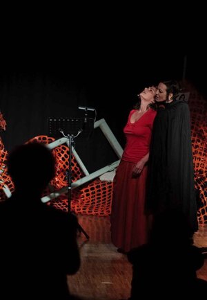 Lo spettacolo è un intreccio continuo di voci narranti, canto elaborazione elettronica e immagini, che porta alla creazione di un tessuto sonoro fatto di echi, rimandi e ossessioni. L'intento è amplificare il tessuto emotivo del personaggio la cui voce si dilata e si moltiplica all'infinito.